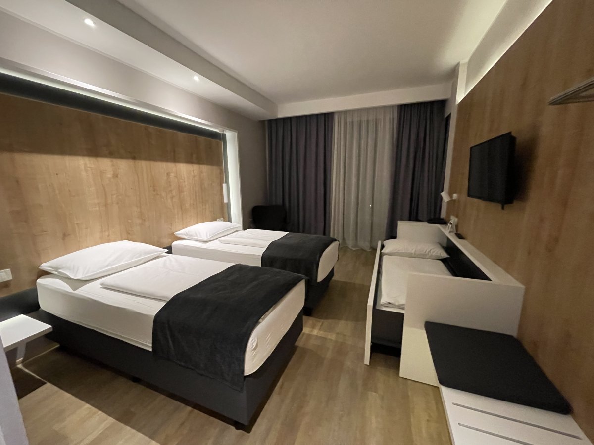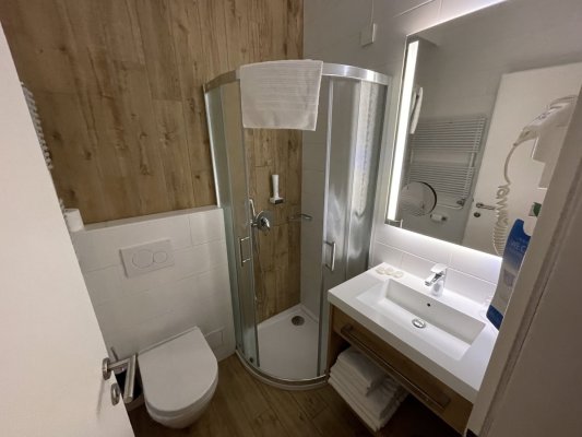 Great hotel for one night. We stayed in a triple room and we were comfortable. Modern furniture, good plumbing and clean bedding. The hotel offers ... More Great hotel for one night. We stayed in a triple room and we were comfortable. Modern furniture, good plumbing and clean bedding. The hotel offers a shuttle service to Ljubljana Airport. There is paid parking right behind the hotel.
