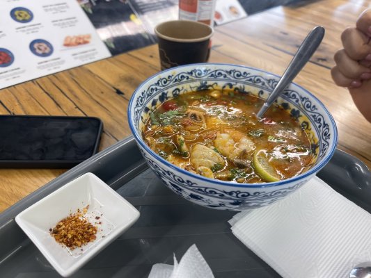 Ресторан Ramyunbaby вразив своїм супом том ям. Бульйон був насиченим, ароматним і пікантним, з ідеально ... More Ресторан Ramyunbaby вразив своїм супом том ям. Бульйон був насиченим, ароматним і пікантним, з ідеально збалансованим кисло-солодким смаком. Поєднання спецій і свіжих інгредієнтів робило кожен ковток справжнім задоволенням. Безумовно, це одне з найкращих місць, де можна скуштувати том ям.